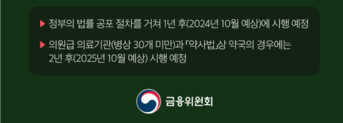 「약사법」상 약국의 경우에는 2년 후(2025년 10월 예상) 시행 예정이라고합니다.